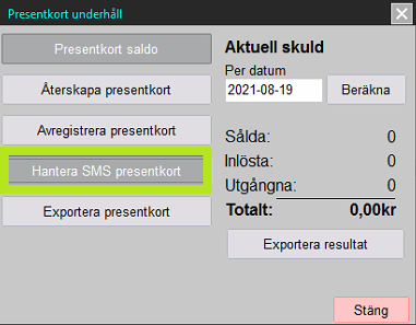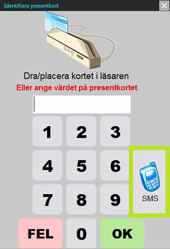 För att sälja SMS presentkort, klicka på knappen ”$” nere till vänster på skärmen.