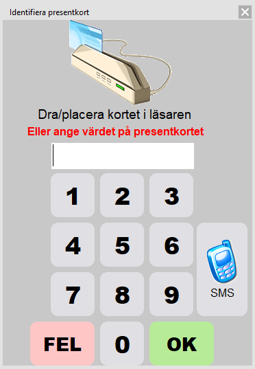 Om presentkortet är i form av ett magnetkort (inringat med rött). Dra kortet två gånger. Annars hoppas detta steg över.
