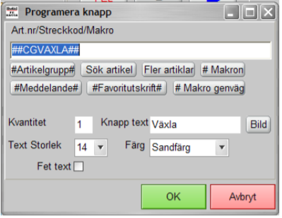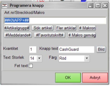 1. Skapa först en KNAPP+ (undermeny) som heter: CashGuard där fyra knappar ska placeras.