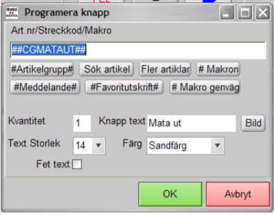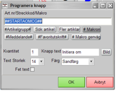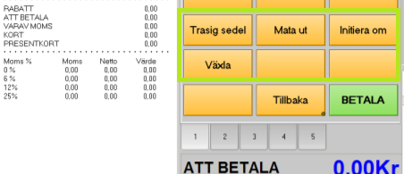 Starta PC Kassa, kontroller att PC Kassa fått kontakt med CashGuard och skapa därefter knappar för CashGuard-hanteringen enligt nedan