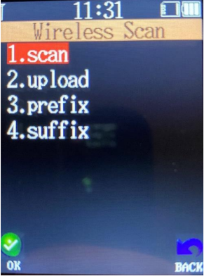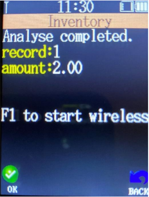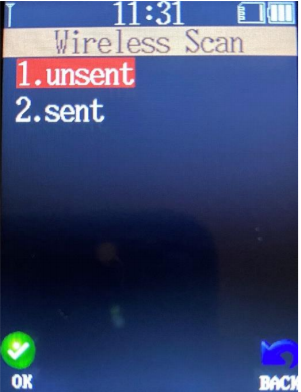 Wireless scan. Använd handenheten som en trådlös skanner och överför streckkoden direkt. Om handenheten är utanför räckvidd från mottagaren så visas en tom antennsymbol i det övre vänstra hörnet samt artiklarna blir flaggade som ”Ej överförda” och kommer överföras när räckvidd erhålls. Alternativt överför man dessa manuellt under 2. Upload.