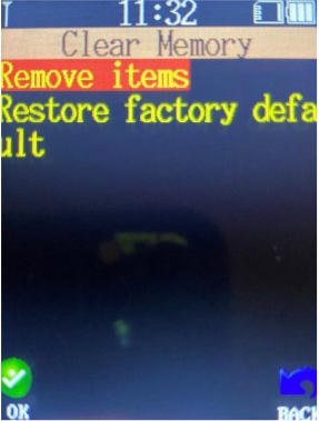 Clear Memory / Remove items: Välj Remove items och tryck knappen [OK] eller [SCAN] samt tryck igen på att bekräfta raderingen. OBS! Raderade artiklar kan inte återfås.