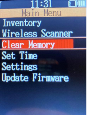 Clear Memory: Rensa alla lagrade artiklar i handenheten och börja om med tom lista.