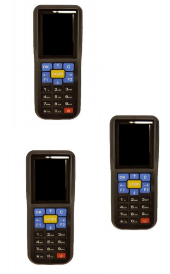 När man skall läsa en streckkod håller man inne den gula Scan knappen. Pil vänster (F1) samt höger (F2) är funktionsknappar och kan ha olika funktioner i respektive programval.