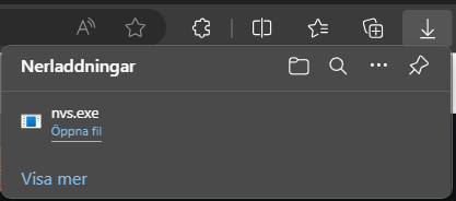 Filen nvs.exe laddas ner. Klicka på denna och välj att köra filen.