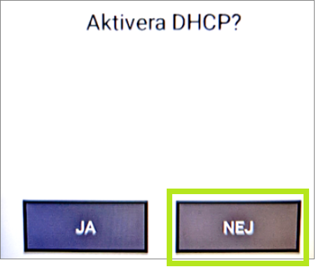 - Välj att svara "Nej" på frågan "Aktivera DHCP?".