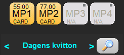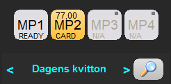 Om en kund däremot inte använder terminalen på en minut kommer transaktionen att avbrytas och knappen övergår till en röd färg med texten "NOT OK". På samma sätt fungerar det ifall kunden manuellt stoppar beloppet i terminalen eller av annan anledning avbryter köpet, knappen övergår då också till rött och signalerar köpet som "NOT OK". Om detta sker går det bra att trycka på MP-knappen igen för att hämta upp kvittot och göra ett nytt försök. Om det upphämtade kvittot rensas ut likt med "F1 NY"-knappen kommer det sparas som ett parkerat kvitto och hanteras därefter manuellt från de parkerade kvittona vid behov.