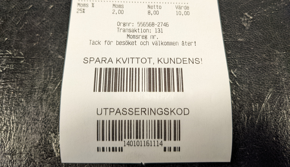 I kassan under kvittoinställningar ställer man in om det ska skrivas ut en streckkod för utpassering. Detta fungerar mot Checkmark Sverige AB och deras grindlösning. Om det fungerar mot andra tillverkare vet vi inte i dagsläget.