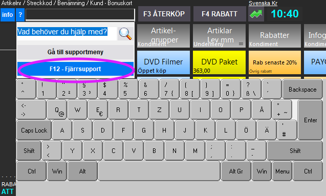 I den nya menyn som visas, klicka på knappen [F12 - Fjärrsupport]