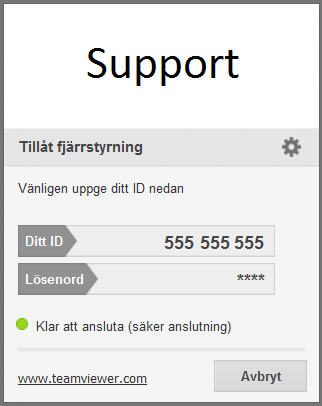 När anslutningen är aktiv ser det ut likt bilden nedan. Uppge Ditt ID till supportteknikern för möjlighet att påbörja fjärrstyrningen.