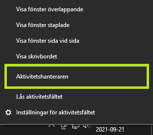 Öppna funktionen "Aktivitetshanteraren" eller om engelska "Task Manager".