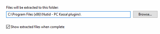 Kontrollera att filerna är extraherade i målmappen Nutid - PC Kassa\plugins\PP