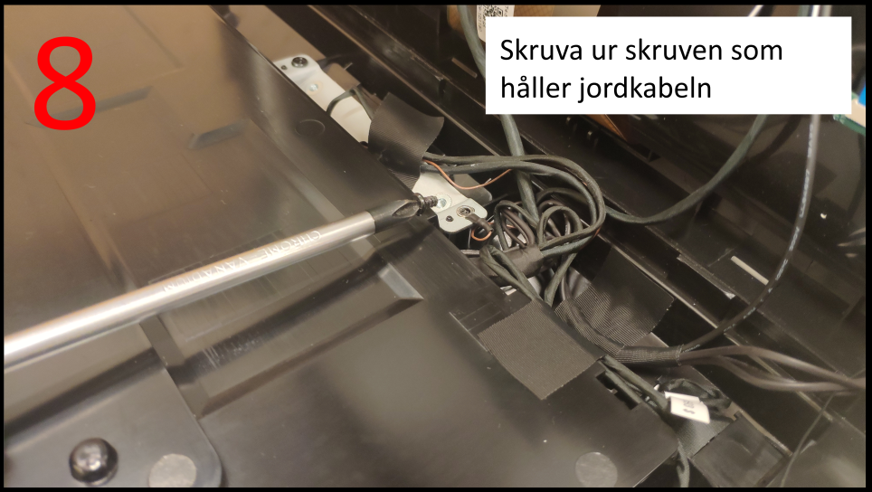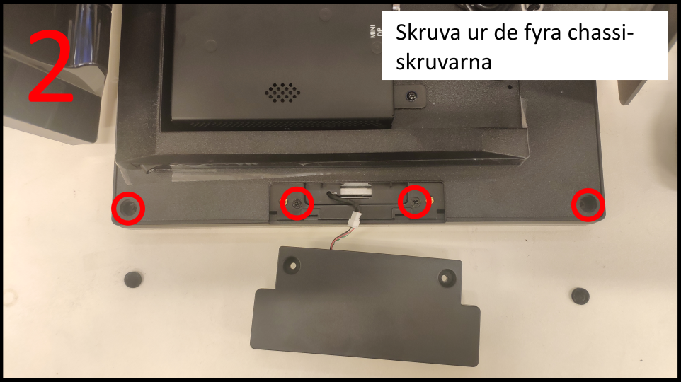 Det har visat sig att jordkabeln till kunddisplayen ibland kan orsaka att kunddisplayen slutar att fungera, börjar blinka eller tappar kontakt. Om dessa problem uppkommer och inget annat åtgärdar problemen följer här en guide över hur en auktoriserad kassatekniker kan öppna upp datorn och undersöka jordkabeln samt fästa denna på en annan jordpunkt.