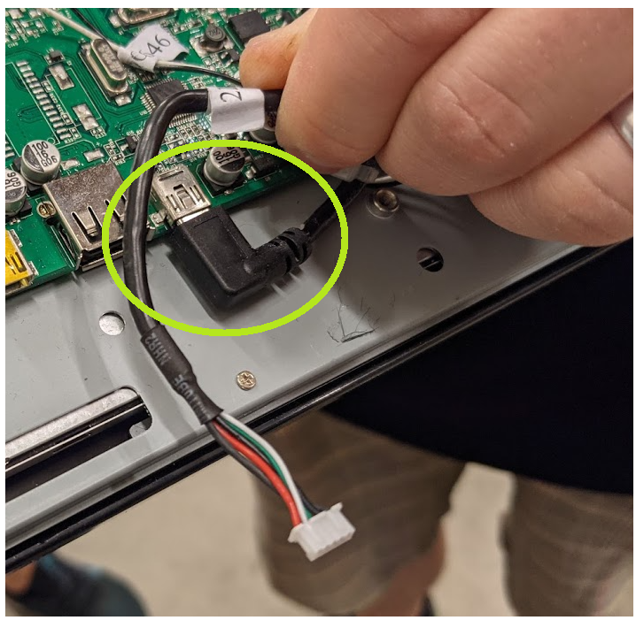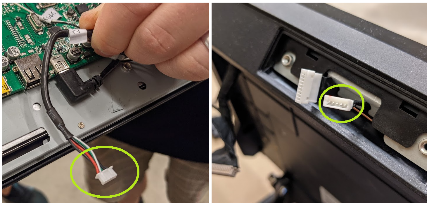 2. Glappande kabel till kunddisplayen eller internt inuti själva kunddisplayen (se bilder nedanför.)