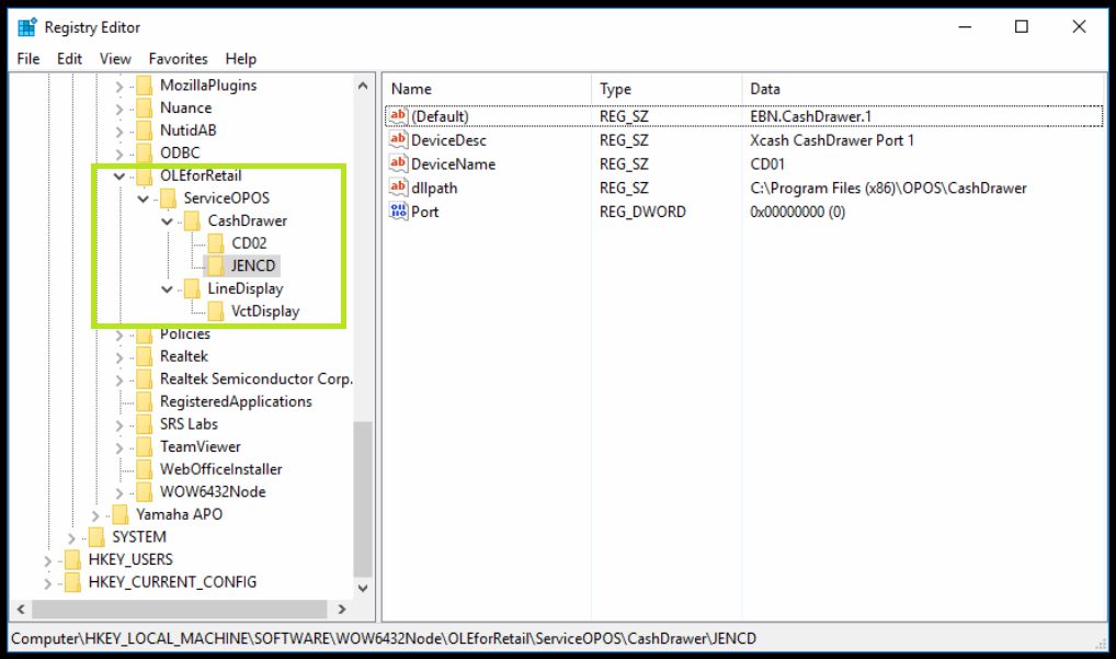 HKEY_LOCAL_MACHINE - SOFTWARE - WOW6432Node -OLEforRetail