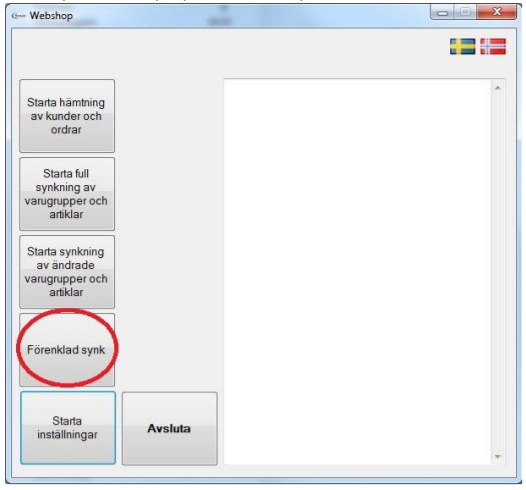 Gör man i denna ordning så kommer valda artiklar synkas upp till webbshopen inom någon minut och en bekräftelse kommer i mittenrutan.