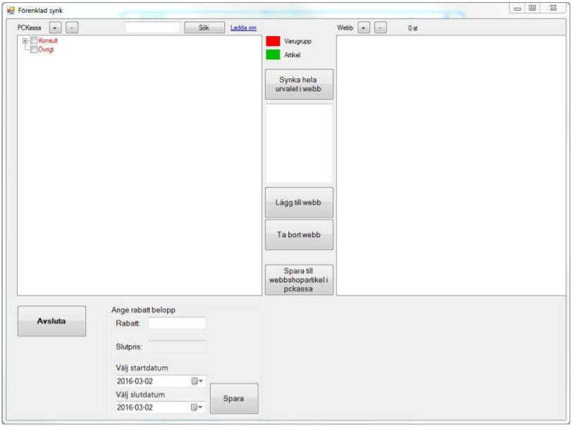 I denna ruta visas PC-kassas varugrupper på vänster sida och webbshopens på höger sida.