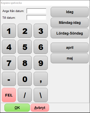 Ange från och till datum. När rätt period är satt trycker du på OK för att kopiera.