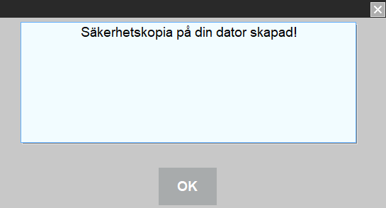 När säkerhetskopian är skapad meddelas detta på skärmen.