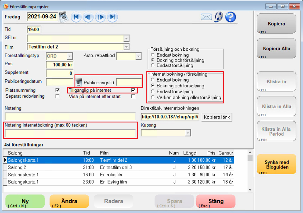 1. Öppna föreställningsregistret och skapa dom föreställningar ni vill ska synas på er internetbokning