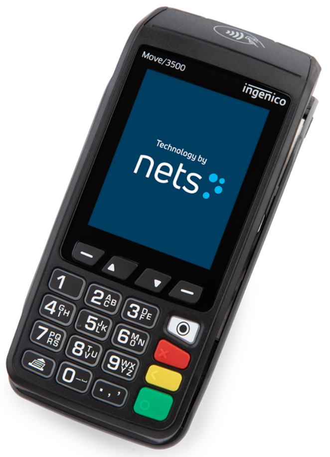 Move 3500 från Nets är en portabel och batteridriven terminal som kan kommunicera till kassan antingen över Wi-Fi eller via nätverkskabel i dockningsenheten. Terminalen laddas upp igenom dockningsstationen som finns antingen för enbart laddning eller som en "blåtands"-station där Ethernetkabel ansluts. Vi kommunicerar mot denna modell antingen direkt över kundens Wi-Fi eller via Ethernetkabel som kopplas via dockningsstationen. Om Ethernetanslutning använd kommunicerar dockningsstationen till själva kortterminalen via bluetooth. De två kopplingsvägarna förutsätter två olika terminaler. Det går alltså inte att skifta mellan Wi-Fi-läge eller Ethernetläge då det är olika uppsättningar av terminal och dockningsstation som beställs från Nets.