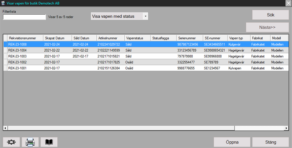 - Export av vapenrapporter i Weboffice (inför eventuell inspektion mm.)