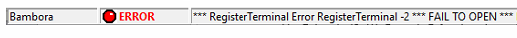 Vid misslyckad anslutning möts man av ERROR *** FAIL TO OPEN ***. Detta innebär att kassan inte lyckas öppna kommunkationen till kortterminalen och det kan bero på allt ifrån felangiven COM-port eller baudrate, fel IP-adress, nätverksporten är blockerad mm. Kontrollera kablage och mappning av terminalen, starta om PP, starta om kortterminalen och försök igen.