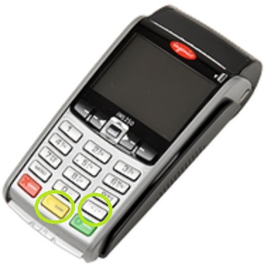 När PC-Kassa är släckt och enbart datorns skrivbord är öppet ställ handenheten i dockningsstationen och starta om betalterminalen genom att hålla inne den gula Clear-knappen och knappen med Punkt / Kommatecken samtidigt i ungefär fyra sekunder. Kortterminalen startar om sig själv.