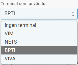 I menyn för "Terminal som används", välj alternativet BPTI.