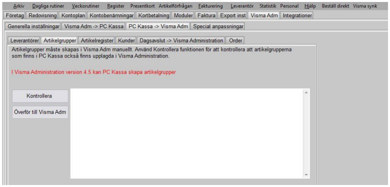 Någon artikelgrupp har lagts till i kassan men inte synkats upp till Visma.