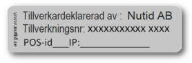 Samtliga säljande kassor ska ha en synlig "tillverkningsetikett" (se bild i avsnitt 2. Anmäl kassaregister) samt anmälas till Skatteverket.