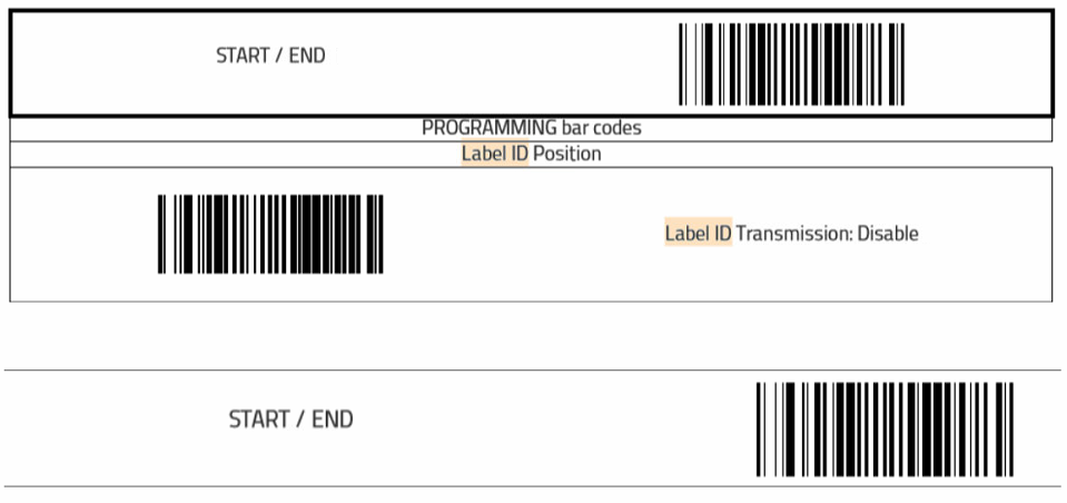 Skanna sedan den andra streckkoden för att stänga av "Label ID Transmission".