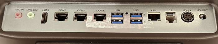 - Anslutningar: 7xUSB A, 3xCOM (RJ45), 1xHDMI, 1xLAN, 1xKassalådeport (RJ11), 1x12V in, 1x12V ut