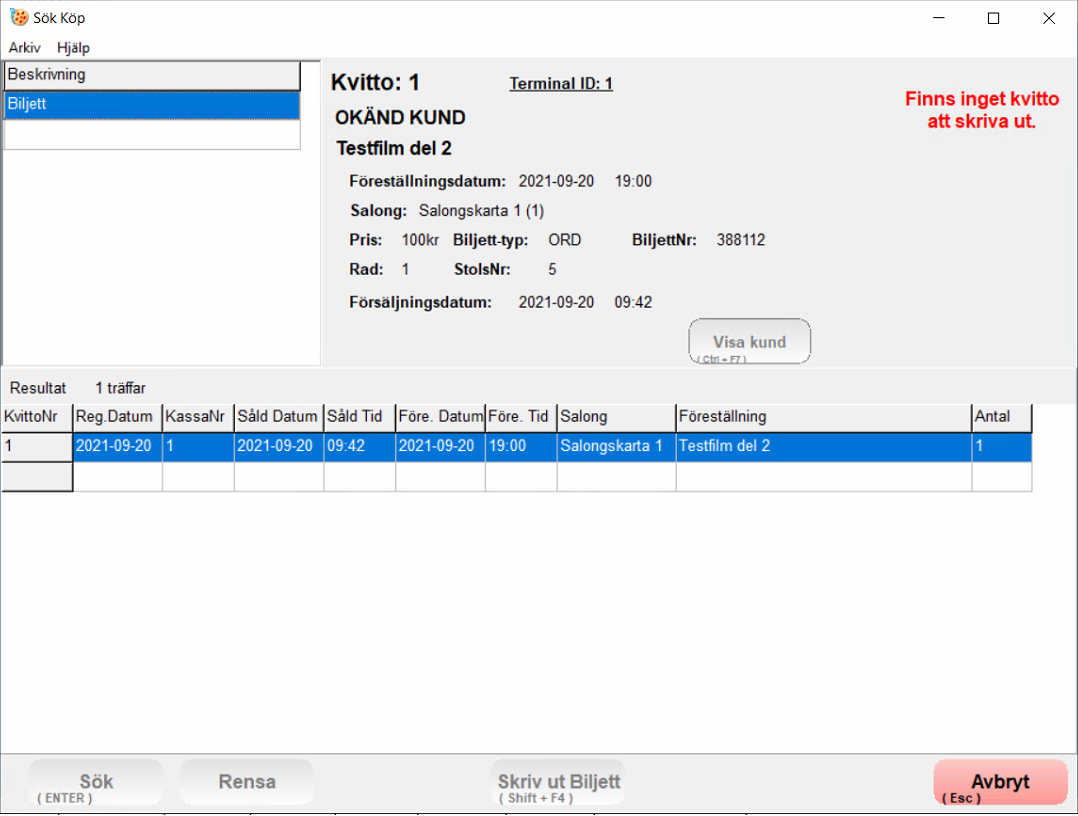 På högersidan så ser man filminformation och dagens kvitto.