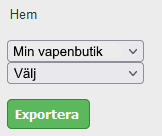 Välj - här finns tre exporter att välja mellan. "Hämta beställda vapen", "Hämta vapenlager" samt "Hämta sålda vapen".