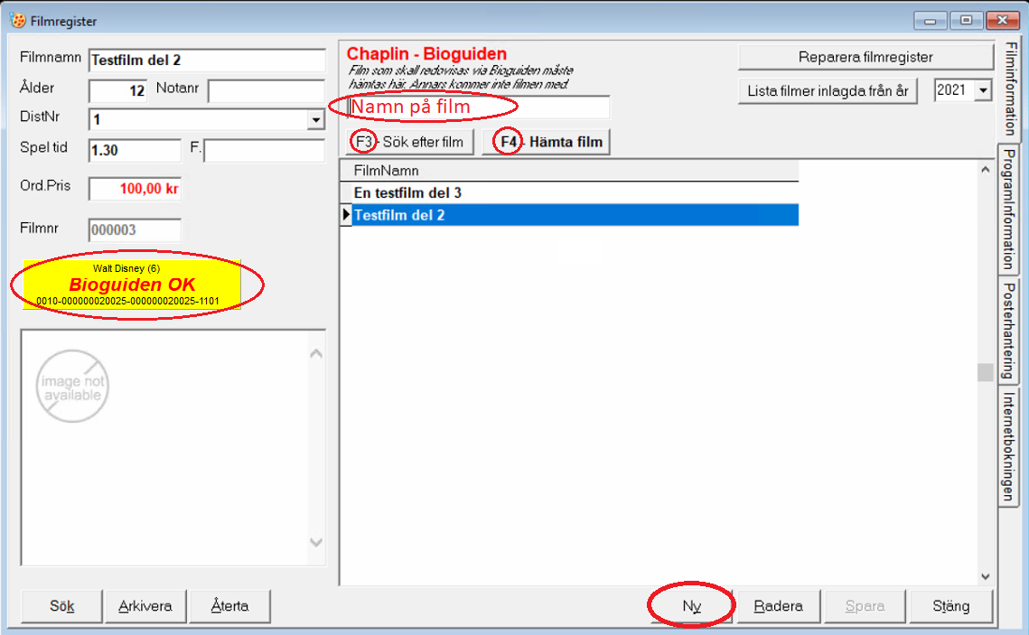 OBSERVERA! Om filmen som sökes inte hittas kan det vara att man behöver rensa hela det registret och hämta allt på nytt.