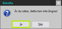Ett meddelande om att bekräfta makuleringen visas på skärmen. Svara "Ja" på detta för att vald försäkringsinformation ska makuleras i kassaprogrammet.