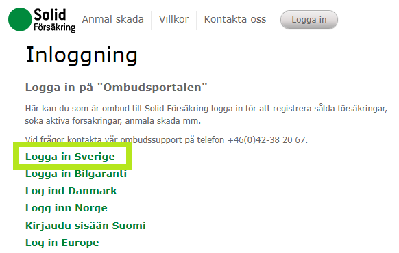 Om det uppkommer några frågor angående inloggning till ombudsportalen eller manuell registrering av försäkringar går det bra att kontakta Solids butikssupport på telefonnummer 042-623 66 00 vardagar mellan 08:00 - 18:00.