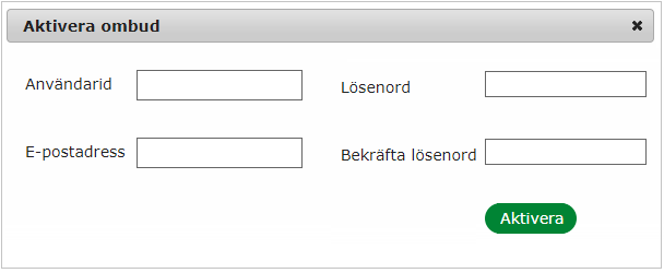 Tryck på knappen "Aktivera ombud" och fyll sedan i uppgifterna i fälten.