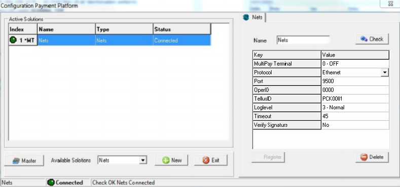 Vid misslyckad anslutning möts man av ERROR *** FAIL TO OPEN *** eller ***LOW LEVEL FAIL***. Detta innebär att kassan inte lyckas öppna kommunikationen till kortterminalen och det kan bero på allt ifrån felangiven COM-port eller baudrate, fel IP-adress, nätverksporten är blockerad mm. Kontrollera kablage och inställningar i terminalen, starta om PP, starta om kortterminalen och försök igen. Det går bra att testa anslutningen med knappen Check. Om detta inte heller går prova att ta bort anslutningen med Delete-knappen. Starta om dator och kortterminal samt registrera PP-anslutningen på nytt.