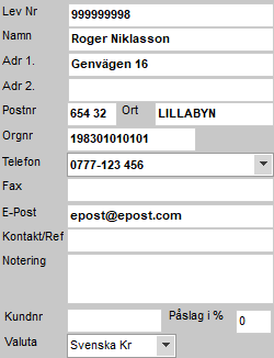 Öppna Leverantörsfönstret via menyn Leverantör - Leverantörsregister.