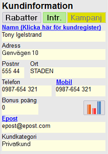 När kvittot är sammankopplat till kund framgår detta med kvittoposten "Kundkort" samt med kundinformationen i den nedre högra delen av kassafönstret.