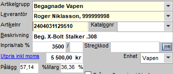 - Registrera det begagnade vapnet i artikelregistret samt vapeninformationen i vapenboken