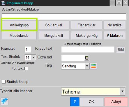[Spara] och [Stäng] artikelgruppsfönstret.
