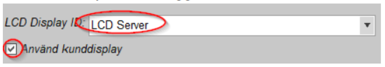 Om kassalådan styrs via VendoPRO/datorn bör den konfigureras att köras via denna programvara. Ställ in på fliken Kassalåda, samma ID som ovan: LCD Server
