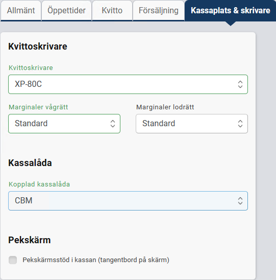 Kassan är testat med Xprinter, CT-S851, CT-E351 samt Star och Epson (oklart vilka modeller).