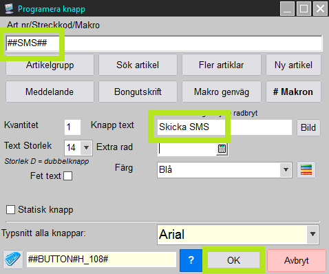Valfritt sms går också skicka genom att skapa en knapp för detta med makrot ##SMS##