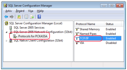 Om det fortfarande inte fungerar att ansluta till HK kan man starta SQL Server Configuration Manager på huvudkassan.