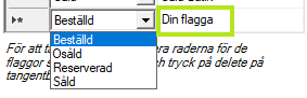 För att radera ett flaggnamn, markera raden och tryck på delete-knappen på tangentbordet.