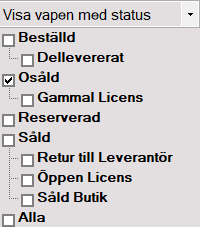 Det går nu bra att filtrera ut listan och visa enbart de vapen med vald status genom rullistan Visa vapen med status.